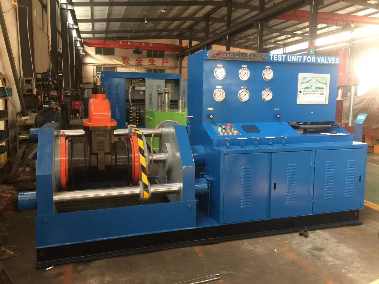 JWT型頂壓式閥門試驗臺是我公司在多年生產閥門檢測設備經驗的基礎上自主研發的新一代頂壓式閥門測試臺并擁有國家技術專利知識產權,專利號ZL2016 1 0240324.1.專為解決閥門制造廠、閥門使用等單位對無法蘭式<J61、J63、Z61>等閥門和法蘭式各種類閥門能在一機上進行檢測試驗的要求,按照《通用閥門的壓力試驗》和《閥門的試驗與檢測》的標準規范要求。本機集液壓、機電、試壓及液體介質貯存循環使用于一體,具有結構合理、功能完善、操作方便等特點,廣泛用于公稱通徑DNl5-800mm各類高中低壓閥門的強度和密封。性能試驗。最高密封試驗壓力32.0MPa,強度試驗48.0MPa。本設備廣泛用于閥門制造業和石油、石化、核電、化工等使用、閥門維修部門等單位的一種先進理想的閥門檢測設備,主要用于閥門強度試驗和閥門密封試驗。